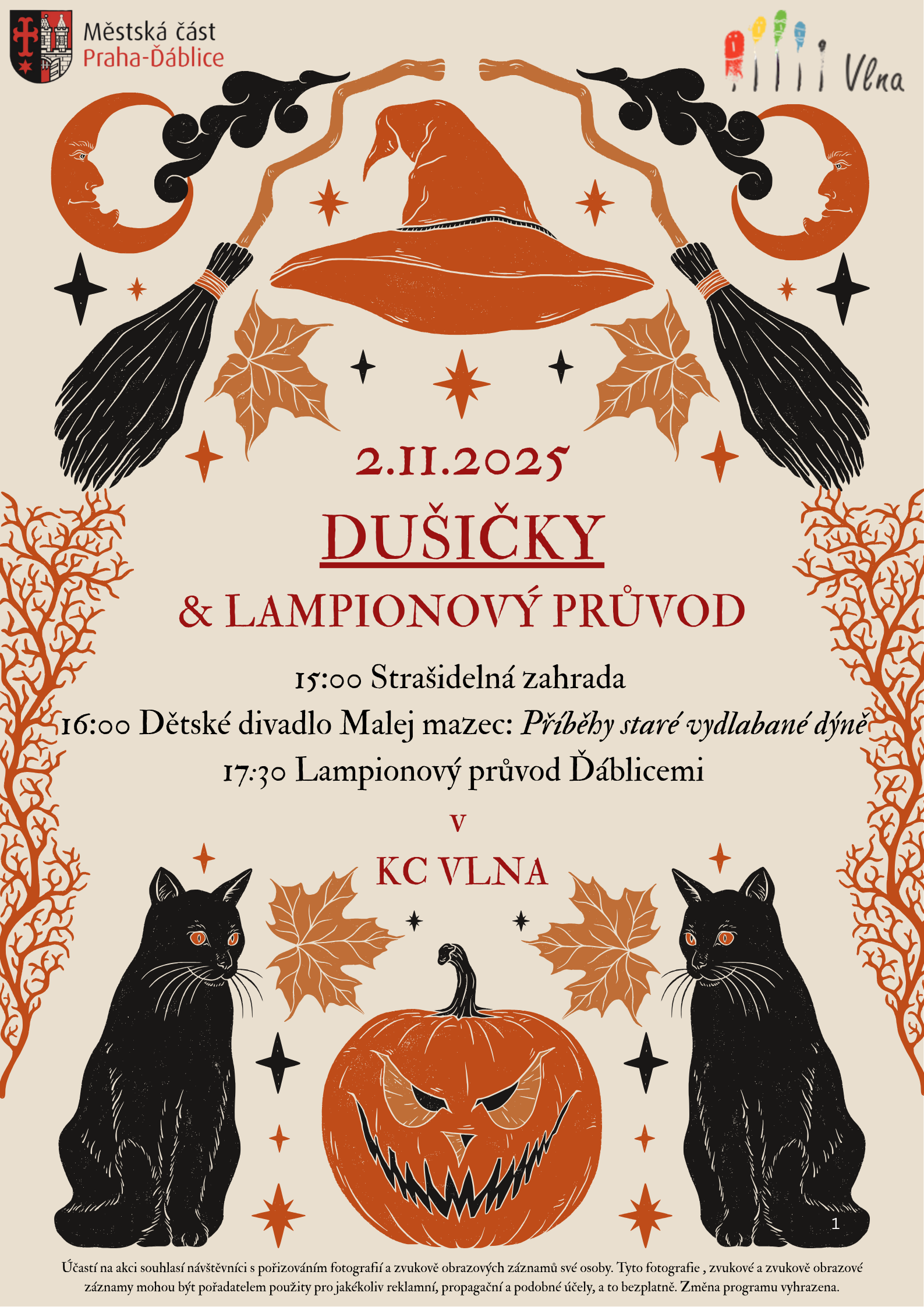 Zájemci si mohou přinést vlastní lampiony, nebo si je zakoupit přímo ve stánku před KC Vlna, kde budou k dispozici i halloweenské masky a doplňky.