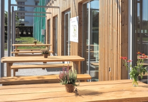 Dlouhá nízká budova, postavená na místě restaurace U Holců, nese zvlněnou střechu a příhodný název Vlna. Hezky zapadá do terénu a jistě se těší na okamžik, kdy kultivovanost stavby a jejího interiéru napodobí i venkovní prostředí. Pokud se chcete o náplni a životě Vlny dozvědět víc, přečtěte si článek Jan Ouředníčkové v říjnovém čísle Ďáblického zpravodaje. Fotogalerie vám nabízí alespoň letmý obrazový medailon.