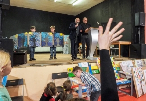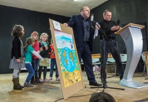 Prvního března 2017 odpoledne praskala ďáblická sokolovna ve švech…tedy kdyby nějaké měla. Konala se tady vernisáž a aukce výtvarných prací dětí z mateřské a základní školy, ale také z výtvarných kurzů Spolku Parkán, který bohulibou akci pořádal. Nejprve děti za školního dramatického souboru zahrály pohádku Šípková Růženka, po nich zazpívaly písničky a na hudební nástroje zahrály děti ze soutěže Ďáblický slavíček. Pak se ujali slova pánové Michal Mošnička a Vladimír Michek, kteří v aukci mistrným způsobem udržovali napětí a dosáhli vysokého ocenění dražených předmětů.