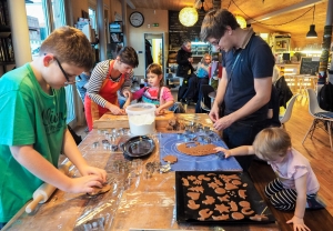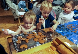 Nedělní odpoledne 26. listopadu ve Vlně bylo opět plné tvořivosti. Především děti, ale i jejich maminky a tatínkové, uchopili do rukou perníkové těsto, rozváleli je klasickým dřevěným válečkem, vzali vykrajovátka a tvořítka, s jejichž pomocí vytvořili polotovar budoucích perníčků. Pracovnice Komunitního centra Vlna jim pomohly figurky upéct, a závěrečné zdobení cukrovou polevou čekalo zase na děti. Mezi pečením a zdobením bylo možné poodejít do klubovny, kde pod nenásilným vedením vznikaly z připraveného materiálu adventní věnce. Kdo jste tam nebyli, po shlédnutí atmosféry zobrazené na fotografiích, si jistě řeknete: "Tak příště..."