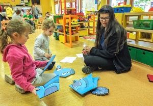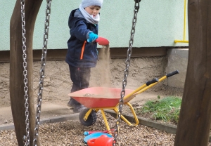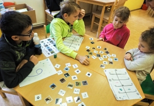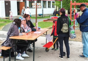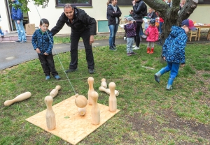 Zatímco rodiče hrabali, zametali, nakládali, odváželi, nebo taky upravovali živý plot a natírali ten kovový, jejich děti plnily desítku zábavných i poučných úkolů, které pro ně připravil „se svými sedmáky“ pan učitel Jiří Zeman.