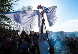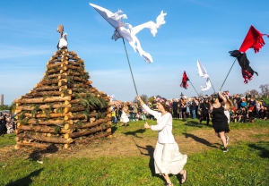 S pálením čarodějnic na vysokých vatrách máme v Ďáblicích poměrně dlouhou tradici, avšak zlé a temné síly jsme z louky nad šestidomím vyháněli poprvé. Síly temnoty, které se vtělily do vlajících černých havranů nesených na dlouhých tyčích, během tanečního víru okolo vatry vyhnali bílí ptáci ztělesňující příchod jara, nového života a pozitivních sil. Všechno to vytvořili Bára a Jan Sládkovi, Míša Ničová, členky ďáblické Taneční školy HIT a řada dalších. Účinek tanečního reje umocnily tóny kantáty Carmina Burana skladatele Carla Orffa. Jaro budiž požehnáno…
