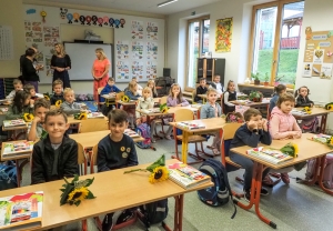 Povíme si něco o slunečnicích. Proč právě o nich? Slunečnice mají jednak velké a krásné květy, jednak v sobě nesou mnoho symbolů. Ve výkladu mnohých asijských kultur představuje květ slunečnice dlouhověkost a harmonii, kdežto její žlutá barva symbolizuje vitalitu, štěstí a inteligenci. Pro mnohé tamější lidi je slunečnice také symbolem nadějné budoucnosti. Její květ s kruhově uspořádanými okvětními lístky je odrazem pevného pouta mezi lidmi a také symbolem radosti a důvěry mezi přáteli, zatímco dlouhé stonky slunečnic mají být symbolem pevnosti a délky přátelství. Podobně jako v minulých letech, také prvního září roku 2022 se na vydlážděném školním rynku v Ďáblicích v první školní den objevila záplava slunečnic. Ocitla se v rukou prvňáčků, které žluté květy s figurkou kominíčka pro štěstí doprovodí do tříd a pak do jejich dětských pokojů. Malí školáci je dostali od deváťáků, kteří se stali jejich průvodci prvními okamžiky v novém prostředí. Kéž se s květy slunečnic naplní jejich symbolika a přinesou jim novou radost a nová přátelství.