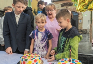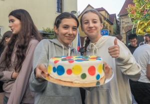 „Po ránu ve čtvrtek 6. října 2022 shromáždily se všechny školní děti nejprve na loučku u pomníku padlých spoluobčanů v 1. sv. válce a pak na dlážděném rynku k oslavě 121. narozenin školy. Představitelé školy, přítomní hosté, členové spolku Parkán i žákyně ze školní žákovské rady, krátce probrali historii základní školy, její současnost, i přání do budoucnosti. Zazněla školní znělka, která předznamenala „sladký vrchol“ dopolední oslavy, totiž předání krásných dortů do každé třídy. Dorty upekly a nazdobily školní kuchařky.“ Letos bych mohl volit podobná slova, snad jen že 6. října 2023 byl pátek a ve školní žákovské radě došlo po roce ke změnám. No a ono výročí už v sobě nese číslici 122. Atmosféru neformální oslavy přibližuje fotoseriál.