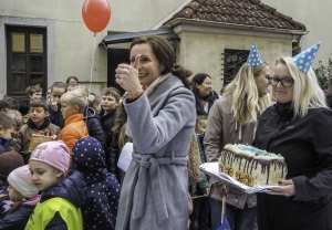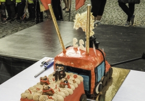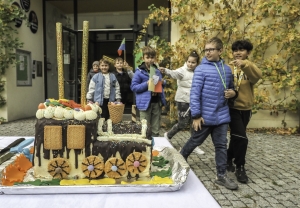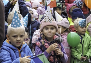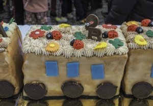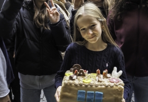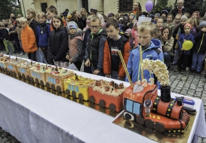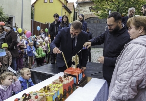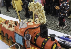 Během krátké dopolední oslavy zazněla česká hymna, zazněla také školní znělka, která byla předznamenáním předání dortů do každé třídy, jejichž soubor měl tentokrát podobu sladkého vlaku. Ten vymyslely, upekly  a nazdobily kuchařky základní i mateřské školy.