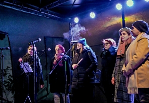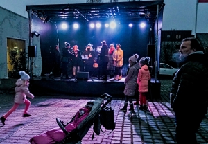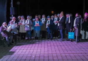 Před pátou hodinou se pod pódiem shromáždila skupina seniorů ke zpěvu vánočních písní a vytvořila tak předehru k vystoupení starosty Martina Tumpacha, místostarostky Martiny Postupové, k adventní promluvě kněze Tomáše Gregůrka a k modlitbě farářky Církve československé husitské Renaty Wesleyové. Vzápětí se o vánoční atmosféru postaral i živý jehličnan rostoucí před radnicí, ozdobený háčkovanými hvězdičkami a propletený světelným řetězem.