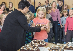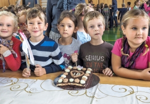 Na počátku školního roku 2016/2017, šestého října dopoledne, zaplnila se tělocvična naší základní školy dětmi, učiteli a pozvanými hosty. Připomenuli si 115. výročí vysvěcení školy a popřáli si hodně štěstí a úspěchů do dalších let. Sladkou tečkou malé oslavy byl dort pro děti v každé třídě.