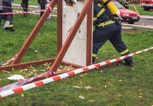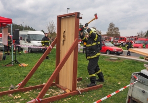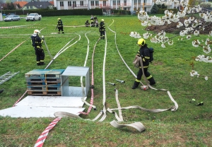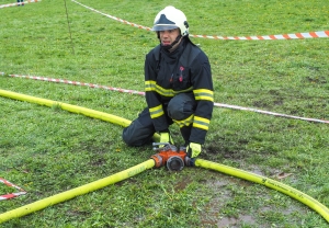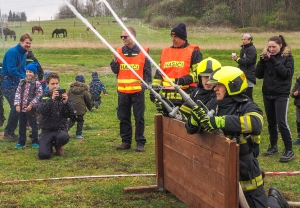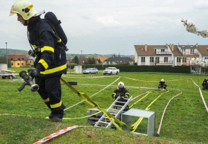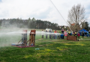 Ty spočívaly v tom, že řidič automobilu vyrazil od křižovatky ulic Kučerové a K náměstí, zastavil co nejblíže k překážce symbolizované červenou latí na stojáncích, a počkal na odpočítání startéra. Ten mávl rukou a začal měřit čas. V tu chvíli hasiči vyrazili z vozu, sekerou zaútočili na dřevěné dveře osazené v železném rámu, v terénu rozvinuli hadice a napojili je na čerpadlo autocisterny, oblečeni do plné výzbroje včetně přileb nebo dýchacích přístrojů překonali nastraženou překážku a vydrápali se do terénní vlny nad místem, které známe z každoročních čarodějnických radovánek. To všechno s hadicemi v rukou. Pak zaklekli u dřevěného plůtku a na povel nechali pustit dva proudy vody, kterými zasáhli terče v podobě vystavených plastových lahví s vodou. Tehdy se stopky zastavily.