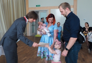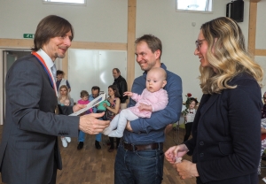 Amálie, Anna, Saskie, Jiří, Filip, Sabina, Elena, Jasmin, Nela, Mathias a Ema, ti všichni, nedávno narození, se sešli se svými rodiči na květnovém „vítání občánků“. Loňské prostředí Komunitního centra Vlna vyměnili v roce 2019 za prostory nového Obecního domu. Atmosféru setkání přibližujeme v malém fotoseriálu.