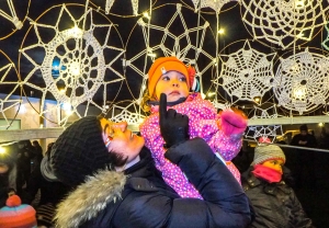 Úderem 17. hodiny došlo na nejočekávanější okamžik, rozsvícení našeho stylizovaného vánočního stromu výtvarníků Barbory a Jana Sládkových, letos vyzdobeného přibližně 180 hvězdami, které upletly ženy sdružené do kroužku Šikovné ruce.