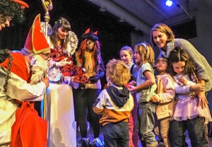 V úterý 5. prosince 2023 se hlavní sál nového obecního domu zaplnil veselým ruchem svátečně oblečených dětí a jejich rodičů. Byli plni očekávání, jakou podobu letos bude mít jejich setkání s Mikulášem, andělem a čerty. Proč právě s touto skupinou? Protože na 6. prosinec podle západní liturgické tradice připadá svátek sv. Mikuláše. A oslava tohoto svátku je spojena s rozdáváním dárků dětem. Aha, a tak proč se slaví Mikuláš už o den dříve?