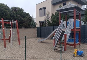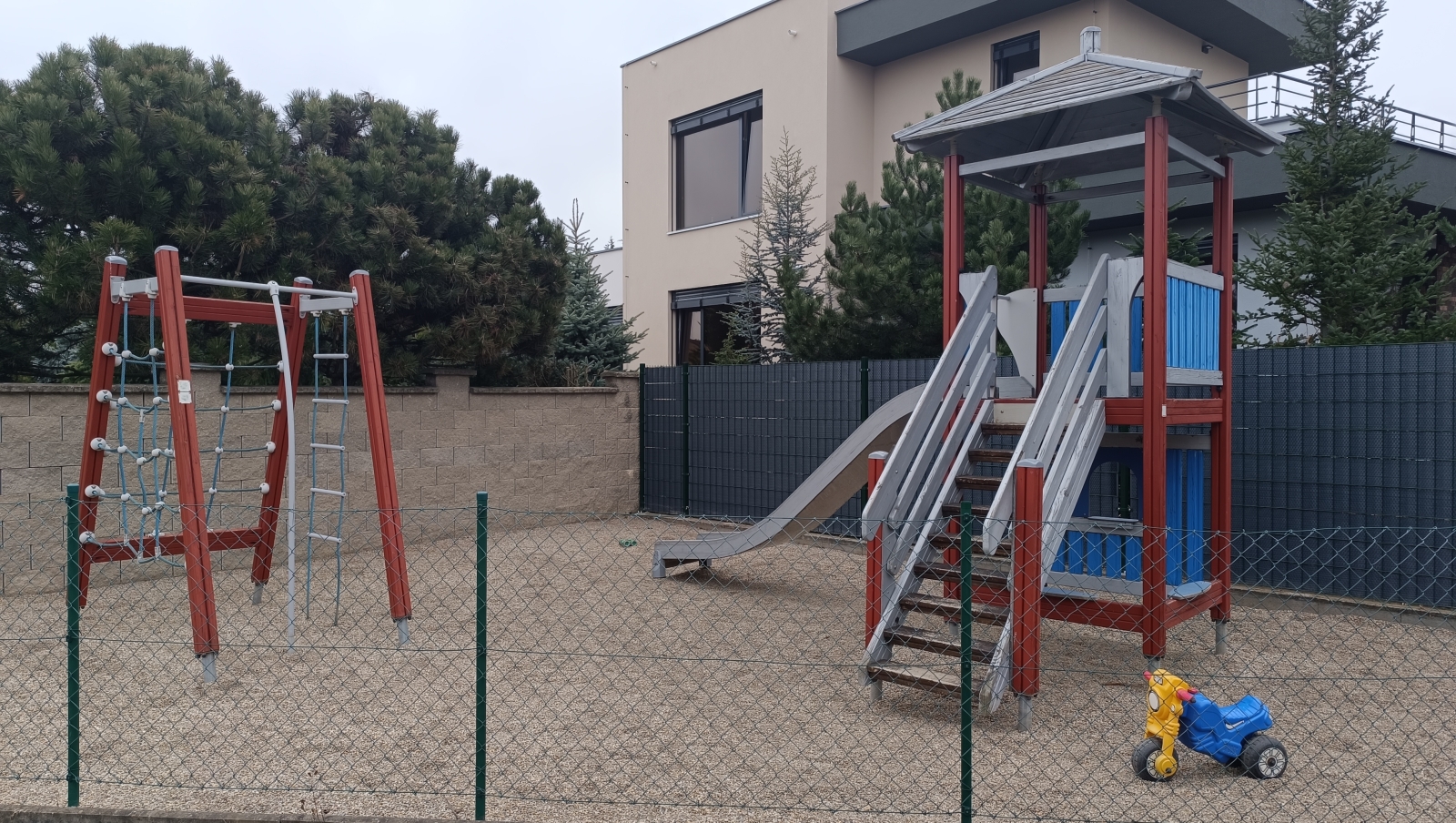 Nejmenší ďáblické hřiště. Herními prvky jsou věž se skluzavkou, přelézačka a vahadlová houpačka. Hřiště je oplocené a celá herní plocha vysypána drobnými kamínky.
