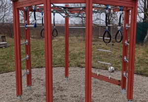 Dříve zde stál necertifikovaný herní prvek, který po nabytí pozemku do majetku městské části musel být odstraněn. Místo něj se nám do lokality podařilo přesunout a zmodernizovat prvek od základní školy, který musel ustoupit stavbě nového pavilonu.