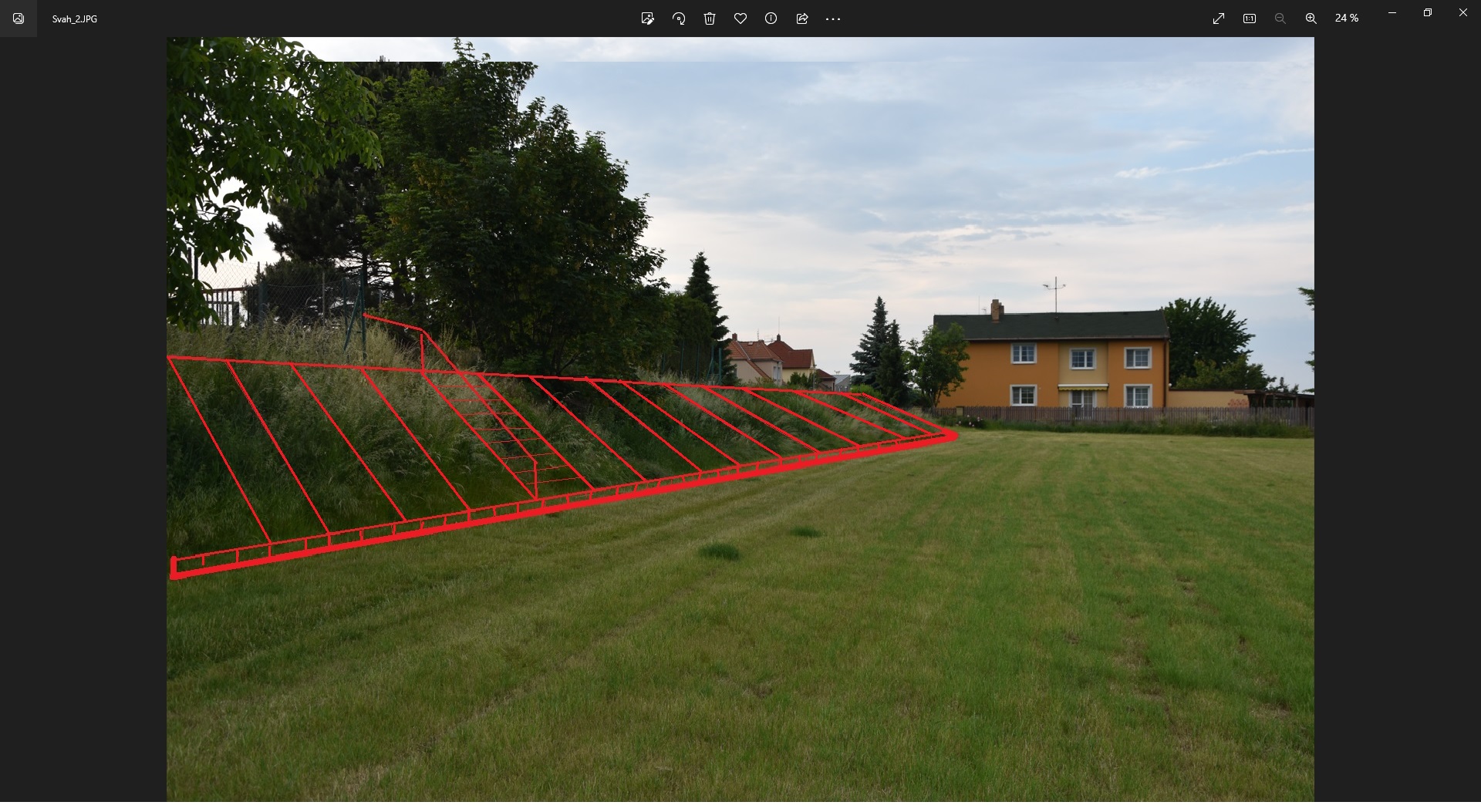Při realizaci tohoto projektu dojde k rovnoměrné úpravě od hrany svahu ke ztracenému bednění, které bude opticky i fyzicky oddělovat louku od svahu. Propojení louky s areálem SK je naplánováno pomocí branky a zahradních schodů. K čemu louka slouží, nám řekne plánovaná informační tabule, která seznámí občany, co je a co není na louce povoleno.